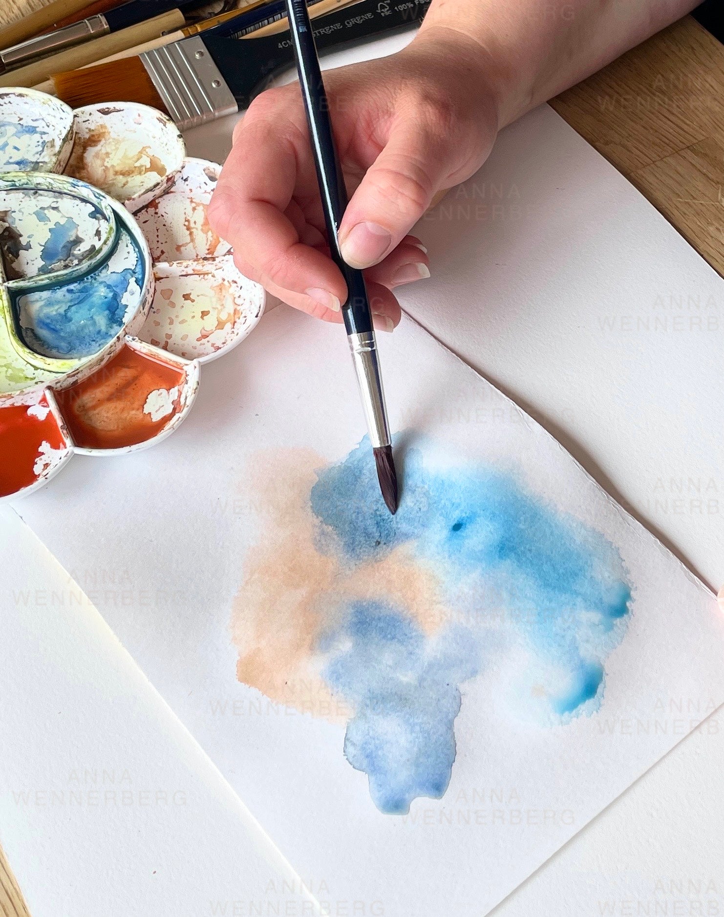 Du får måla med handtillverkad akvarellfärg och kommer skapa egna färgblandningar under arbetets gång.