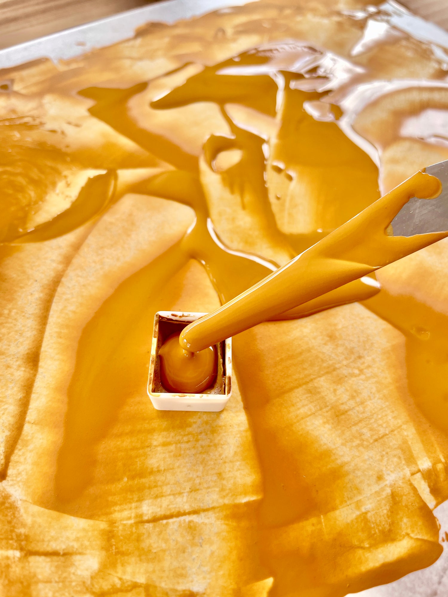 Färgen är rik på pigment och innehåller bara ett enda konserveringsmedel; honung.